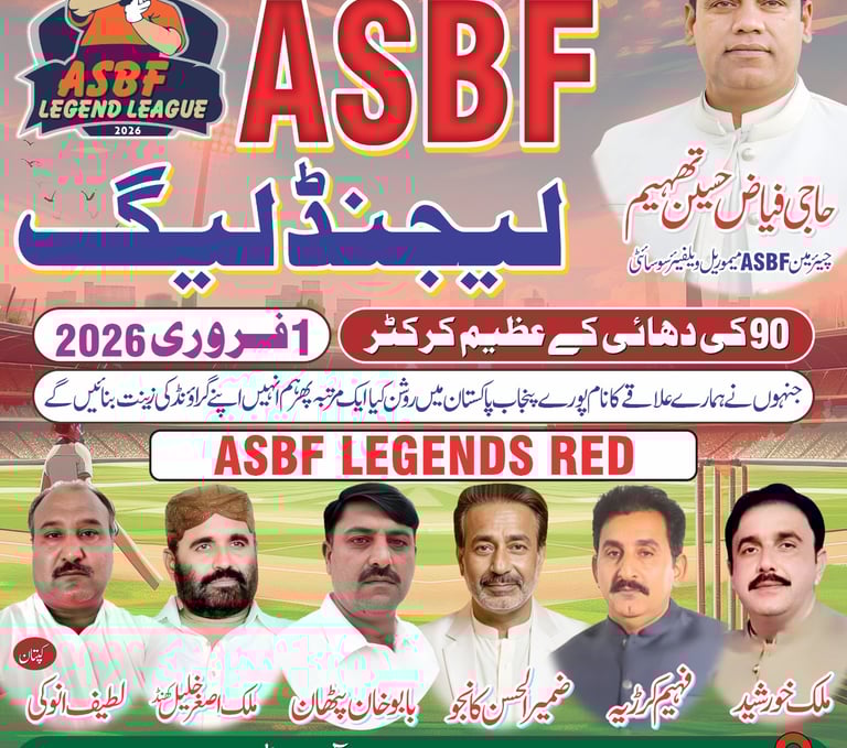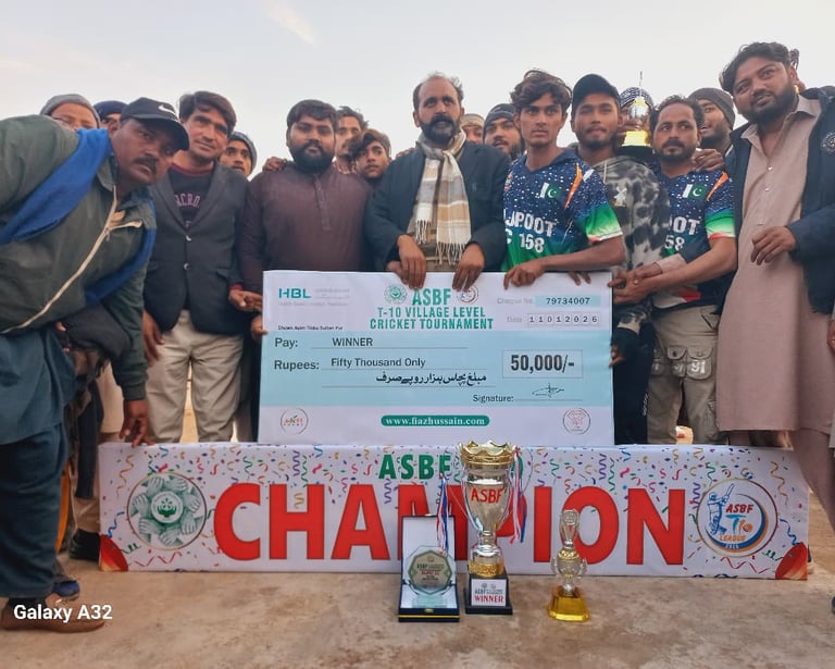 ASBF Cricket Academy: In sha Allah, the upcoming ASBF Cricket Academy in Tibba Sultanpur will provide a platform for local youth to showcase their cricketing talent. This endeavor aims to nurture budding cricketers, equipping them with skills that extend beyond the field.